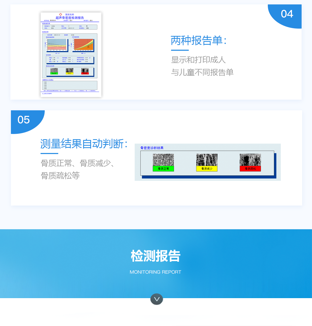 產(chǎn)品在醫(yī)生指導(dǎo)下,適用于受試者橈骨、脛骨骨密度或骨強度進(jìn)行檢驗。